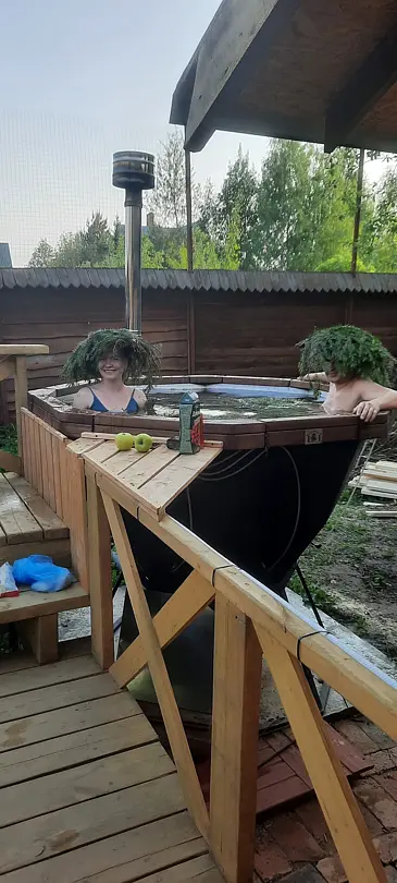 Инфраструктура: чан, зона отдыха, шапочки, обливное ведро, душ, дубовые веники- Русская баня на березовых дровах