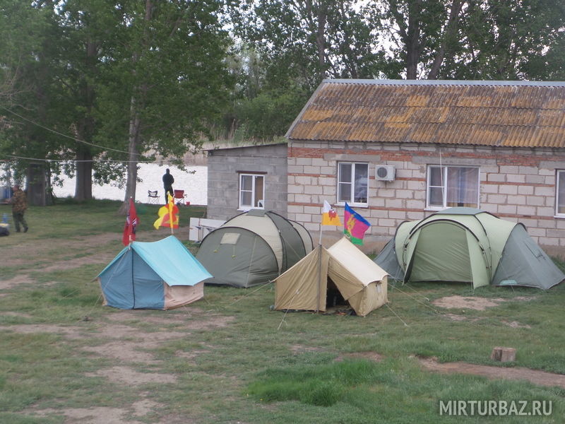 Проживание на территории базы в своих палатках (предоставляется вода, туалет, электричество, летний душ, тёплый душ, холодильник).
