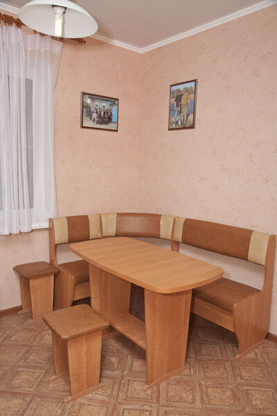 Двухэтажный домик, каждый этаж со своим отдельным входом и предназначен для четырёх человек. На каждом этаже по две двухспальные комнаты, кухня и туалетная комната. Для комфортного проживания установлены кондиционеры. Имеется горячая и холодная вода. На кухнях есть вся утварь для приготовления пищи, газовая плита, печь СВЧ, холодильник.