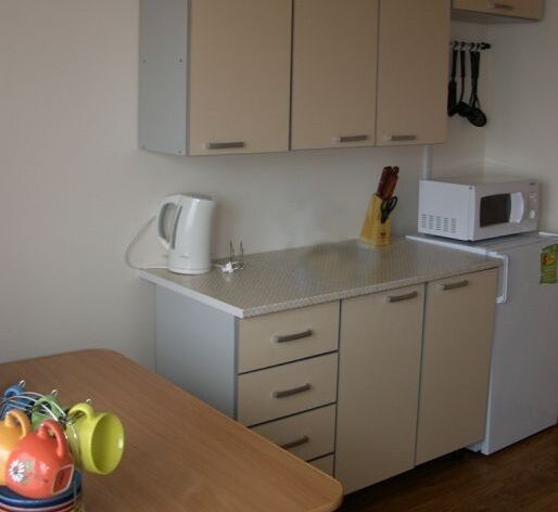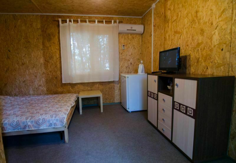 Вагочик состоит из двух смежных комнат. В одной комнате двуспальная кровать, в другой двуспальный диван. Удобства в 10 м от вагончика - капитальное строение, в нём располагается туалет и душ.