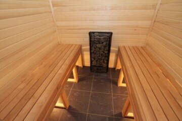 Сауна расположена в комфортном шестиместном коттедже и рассчитана на одновременное пребывание до троих человек. Гости, выбравшие данный вариант проживания, получат возможность наслаждаться сауной в уютной атмосфере, не покидая пределов дома.