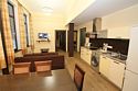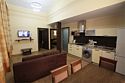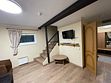Гостиная: панорамное окно, диван (трансформируется в дополнительное спальное место для двоих), журнальный стол. Два санузла с теплым полом: один — туалет, раковина, душ; второй — раковина, душ, туалет, сауна на шесть человек. Аналоговое телевидение (телевизор LED). Внутренний телефон, доступ к сети Интернет по технологии Wi-Fi включен в стоимость проживания.