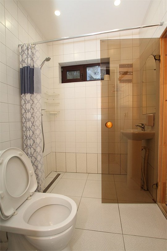 В коттедже пять спален, одна из которых расположена на первом этаже, а четыре — на втором, каждая с отдельным санузлом и душем. В каждой спальне установлены две кровати (90х200), которые соединяются между собой, а также шкаф, всего имеется десять кроватей.
