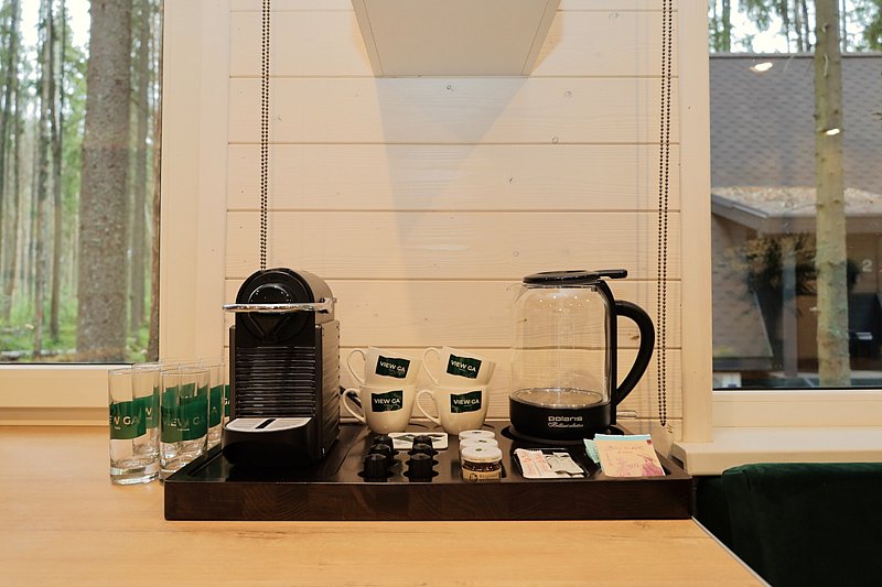 - чайная станция с кофемашиной, набор посуды для сервировки;