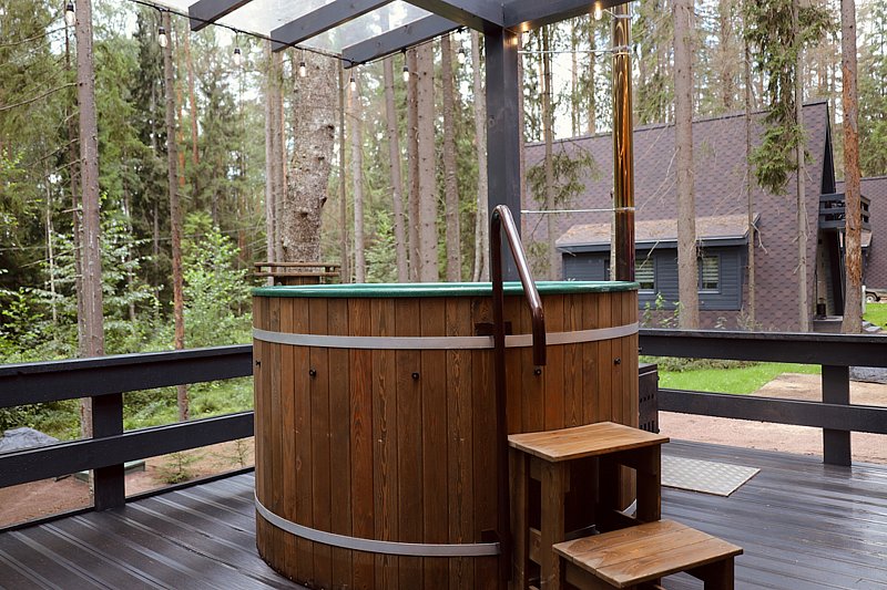 Купель – отличное дополнение к бане. Есть два варианта на выбор. Холодная – для контраста: она готовится со льдом и цитрусовыми фруктами. Горячая – чтобы почувствовать еще больше тепла: эта обогащена солью или ароматными древесными вениками. Наслаждайтесь под пение птиц, любуясь видом на лесную чащу.Стоимость в будние дни-10000р/3 часа; в выходные-12000р/3 часа.