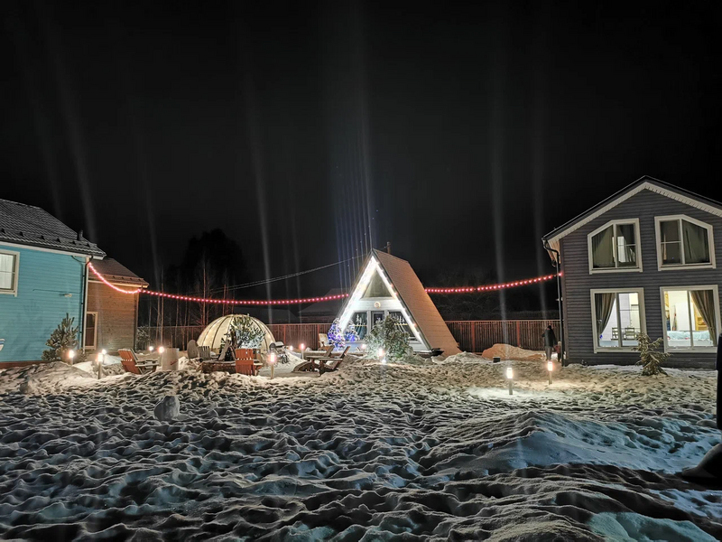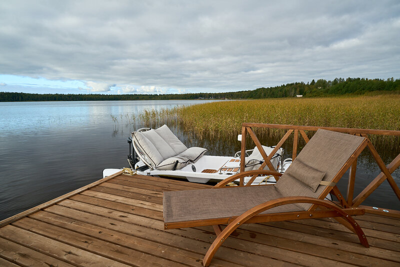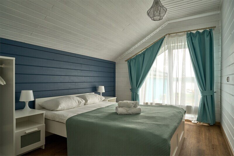 Двухэтажный коттедж с 3-мя спальнями, оборудованной кухней с гостиной зоной и сауной. Бесплатные услуги для проживающих: принадлежности для барбекю, сапы, пирс, пляж, лежаки, иглу и очаг.