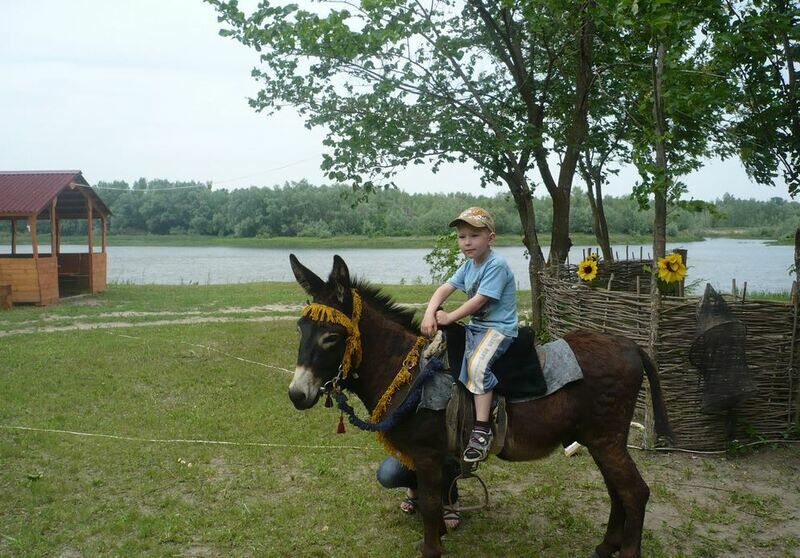Небольшой зоо-дворик с его жителями — осликом и павлином Пашкой (для детей предоставляется катание на ослике).
