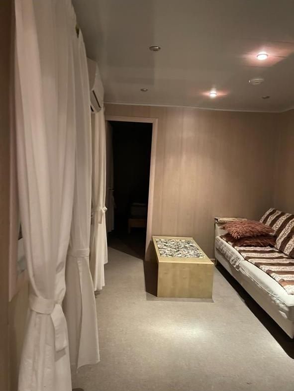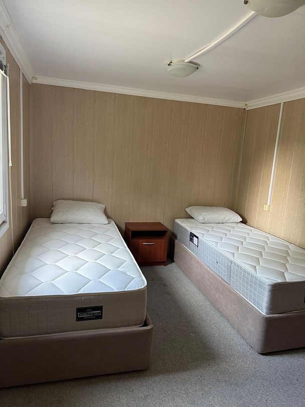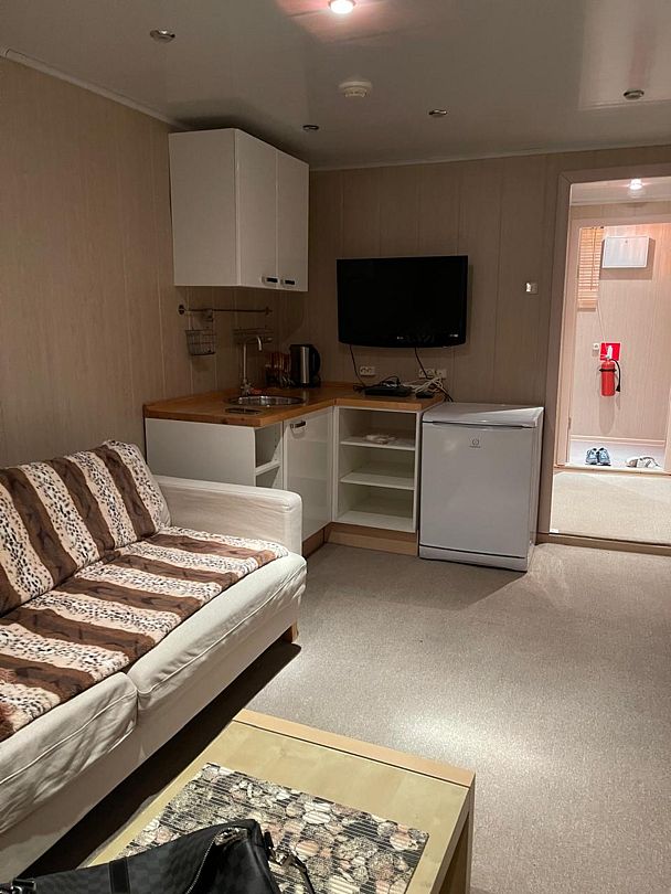 По две кровати в каждой комнате. Одна комната — для приготовления пищи (есть столы и стулья, два холодильника). Оснащение номера: холодильник, две односпальные кровати, стол и стулья, а также шкаф. для одежды