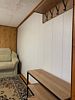 Светлый и просторный номер с большой двуспальной кроватью из белого дерева и раскладным креслом, которое превращается в полноценное спальное место.