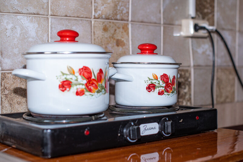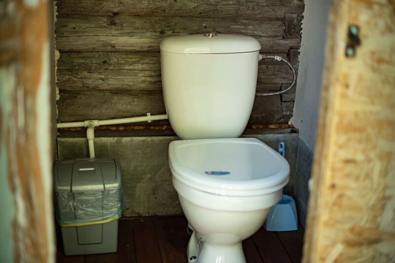 Санузел и душ находятся на улице — в отдельно стоящих помещениях, рядом с корпусом.
