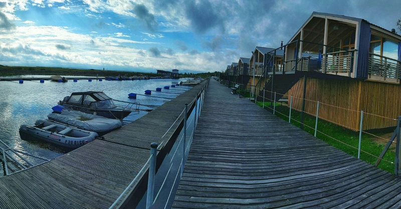 Останавливались в коттедже Бунгало. Просторный и уютный домик для семьи, парковка прям у домика, большая кухня-гостиная со всем необходимым и камином(с запасом дров), в ванной стиральная машина, отдельная спальня для взрослых и кровать под потолком для детей. На веранде качалка и удобные стулья с видом на марину. Территория небольшая, но есть где погулять, рядом с домиками мангальная зона, а совсем рядом веревочный парк с тролеем и ферма с контактным зоопарком и лошадьми. С чт. по вск. работает ресторан, из которого можно заказать доставку в номер или же посидеть там, ресторан дог френдли.