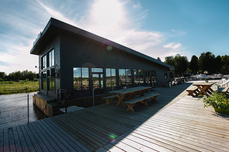 Видовые террасы дома с летней мебелью открывают великолепный вид на яхт-клуб и Ладогу.