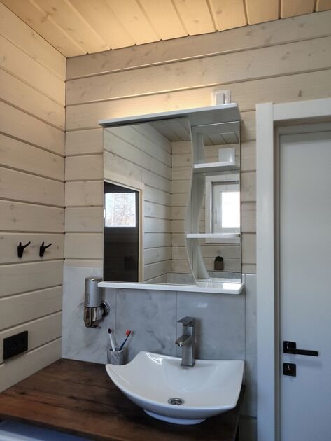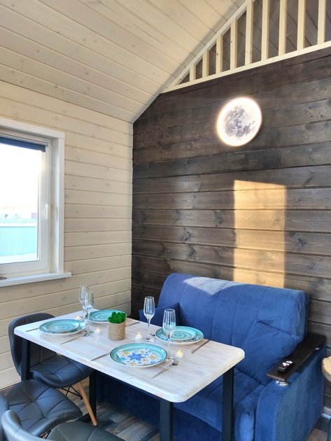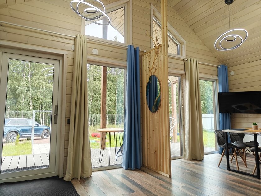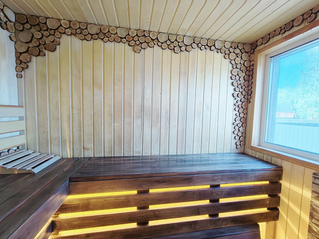 В доме: все удобства, оборудованная кухня, панорамная сауна с лечебным можжевельником.