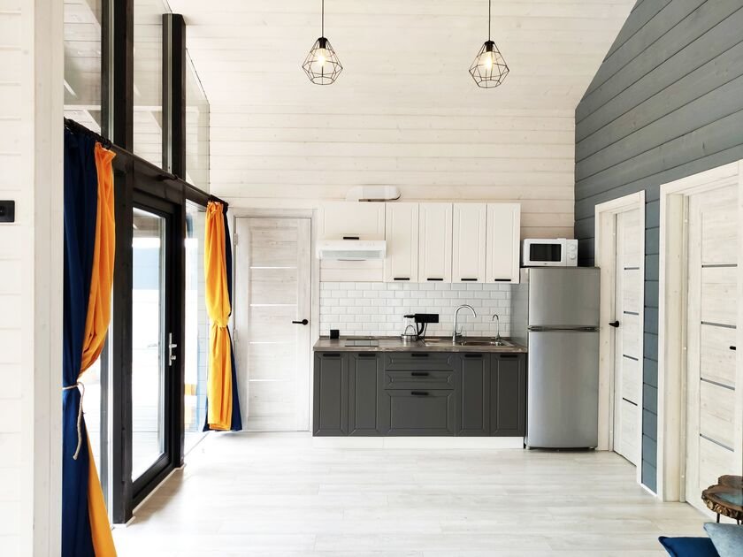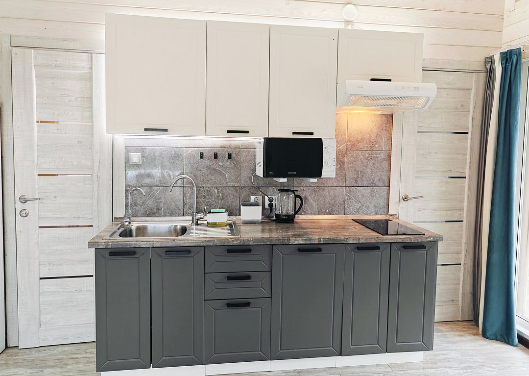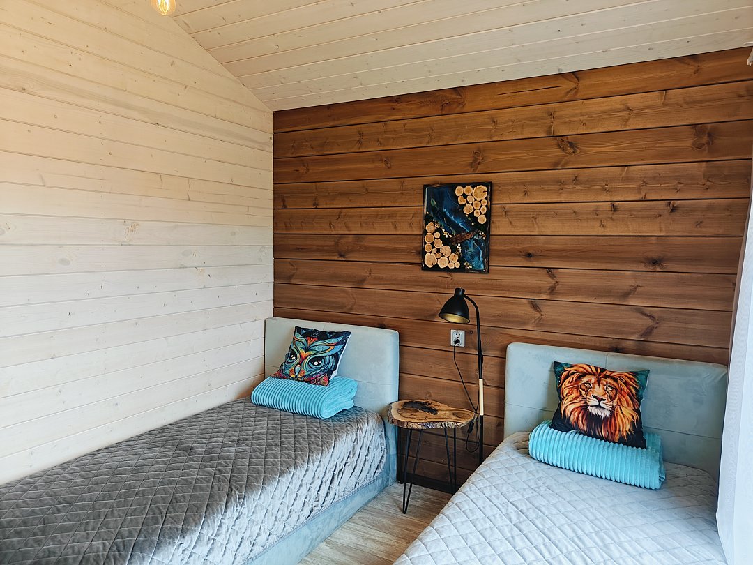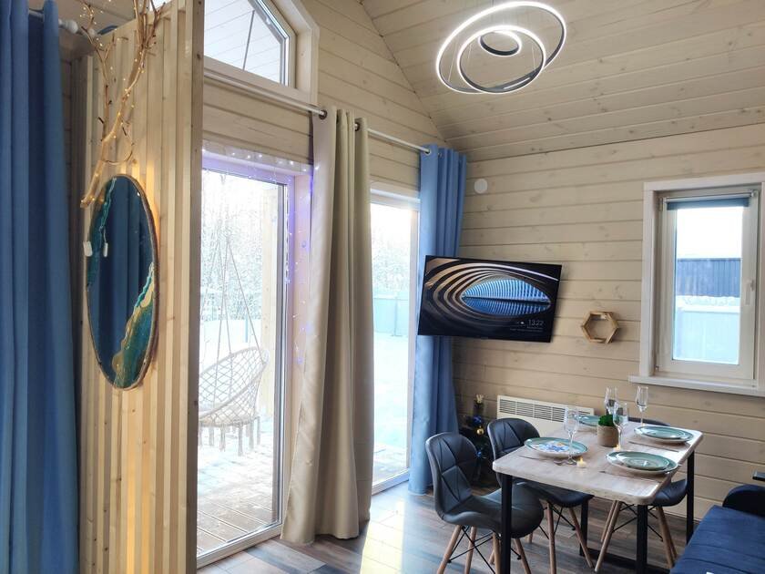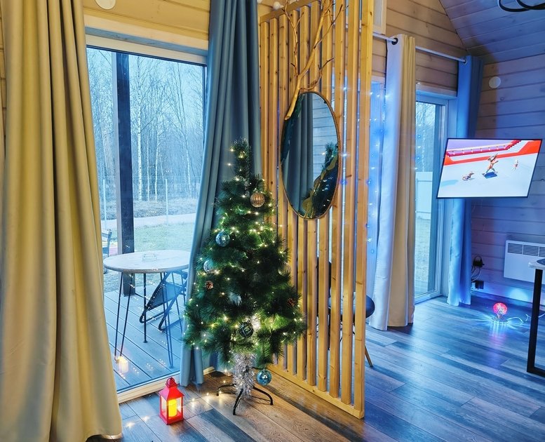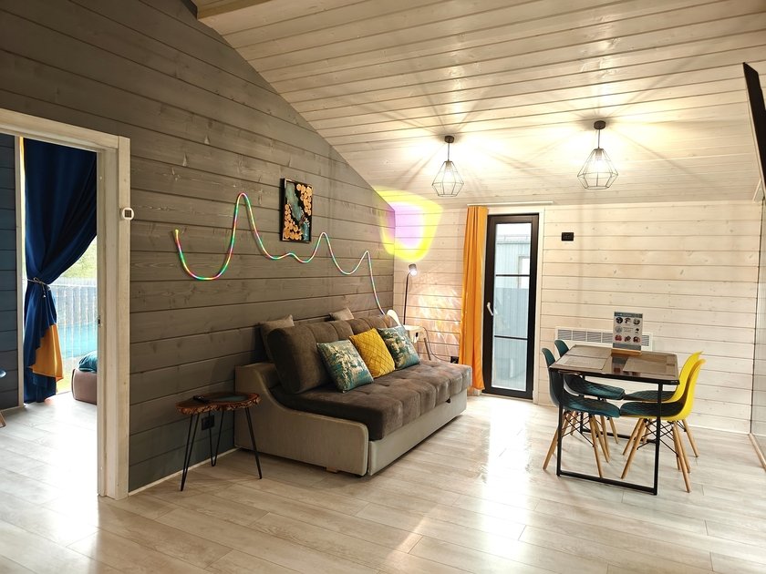 Все коттеджи полностью оборудованы для полноценного отдыха и включают панорамную сауну с лечебным можжевельником, кухню, оснащенную бытовой техникой и набором посуды, удобные кровати с ортопедическими матрасами, просторную гостиную, современный санузел и большую террасу с качелями. У каждого дома имеется собственная мангальная зона для приготовления блюд на свежем воздухе.