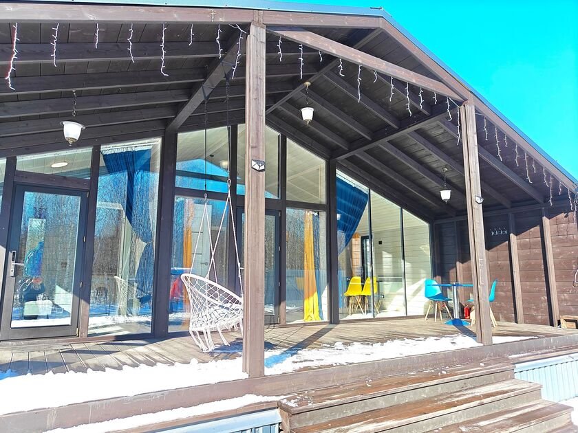 - 8-местный коттедж — заезд после 14:00, выезд до 11:00;