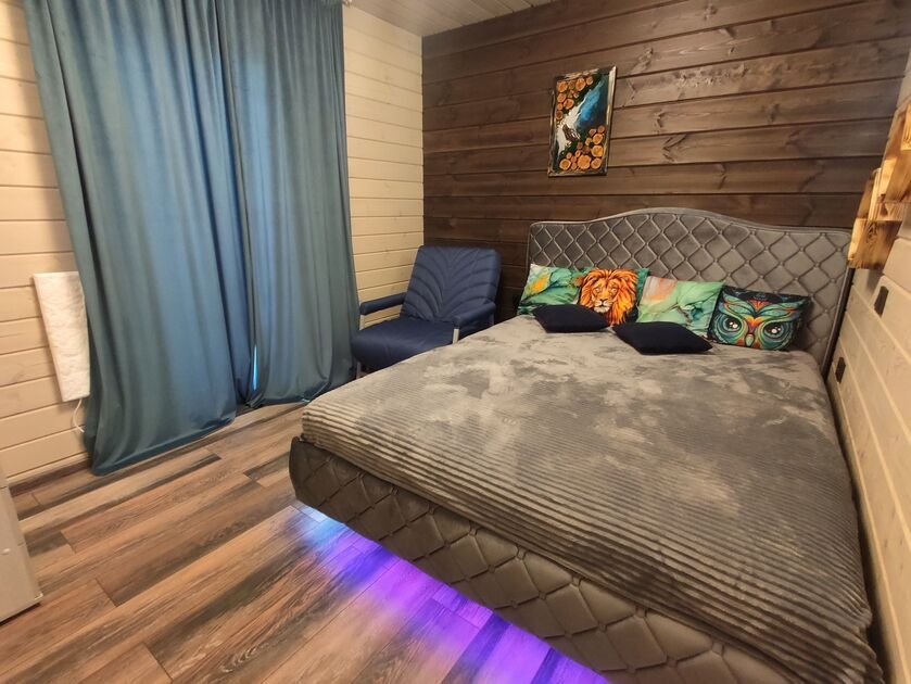 - в доме 1 отдельная спальня с 2-спальной кроватью и раскладным креслом (подойдёт для ребёнка);