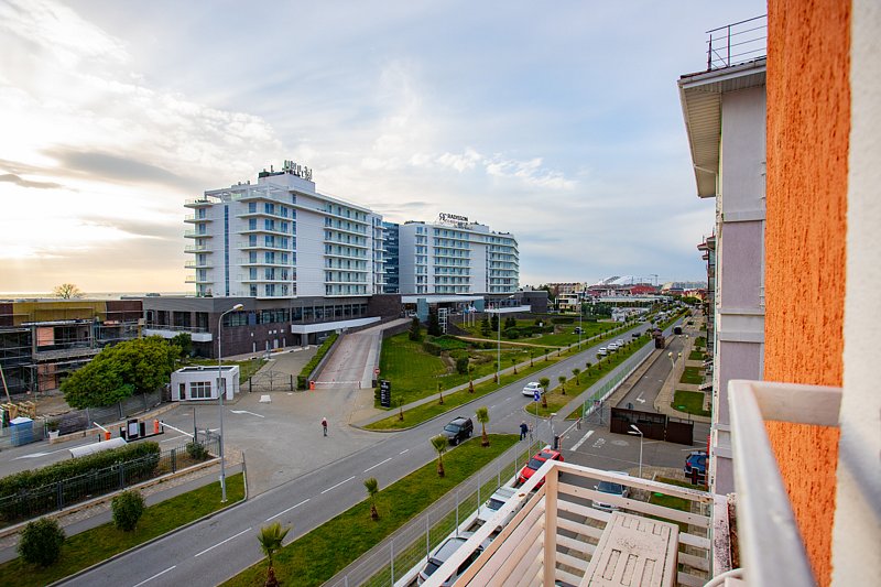 В 5 минутах ходьбы находится один из лучших пляжей Сочи. Галечный пляж хорошо оборудован: на побережье установлены навесы и пляжные зонтики от солнца, есть раздевалки, лежаки, различные водные развлечения как для взрослых, так и для детей.