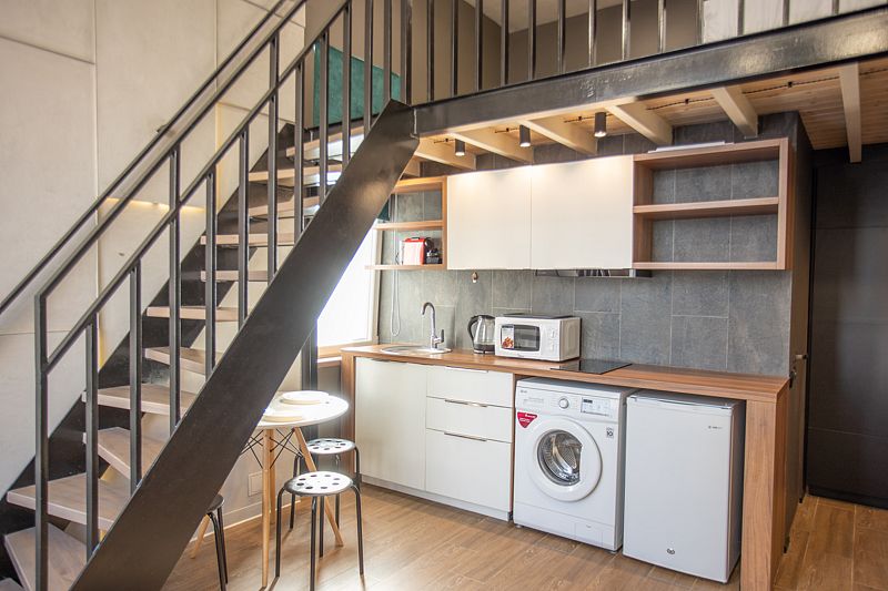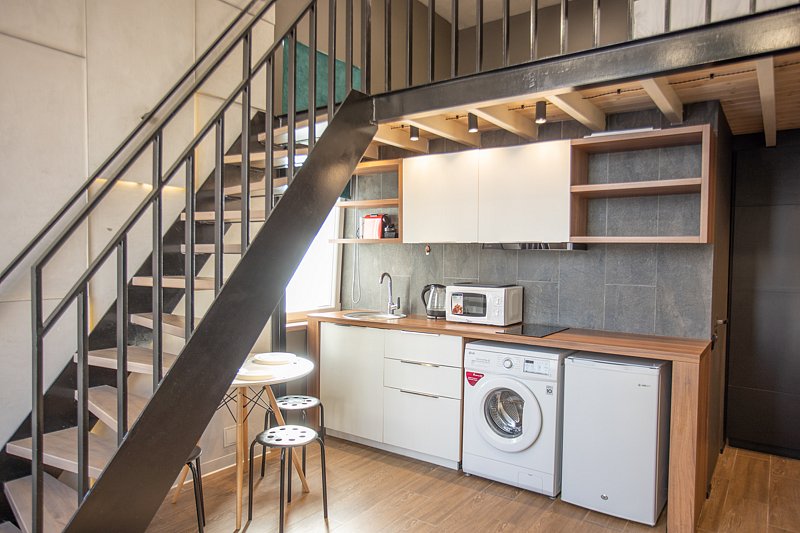 Вторая комната не изолирована, расположена на втором верхнем уровне