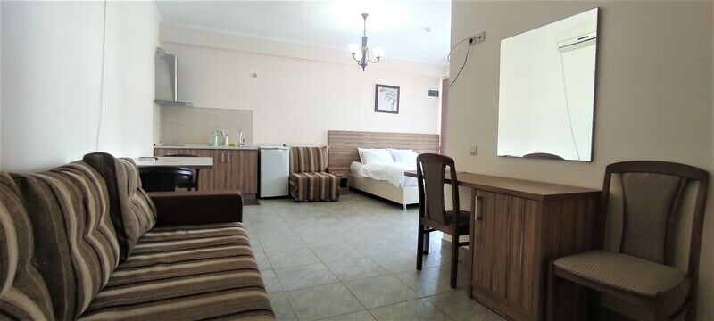 Путешествие с семьейОтличное место.Отдыхали здесь в августе 2024г с семьей. Удобное месторасположение, до Олимпийского парка 5 минут, до моря с детьми 25 минут(можно добраться на самокатах). За углом отличная столовая и рядом вкусная шаурма.В номере холодильник, чайник, фен, полотенца.Уборка в номере через день.Чистый бассейн, красивый пруд с рыбками. У нас сломался чайник, тут же заменили на другой. Спасибо за комфорт Нине Андреевне и помощнице Людмиле!