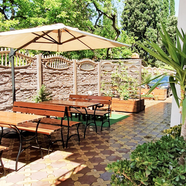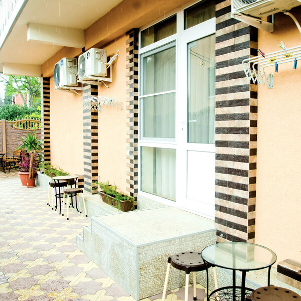Путешествие с семьейОтличный выбор.Надеюсь мой отзыв поможет путешественникам при выборе отеля. Хочется сказать, что мы здесь отдыхали уже дважды и остались очень довольны. Первый раз мы сюда попали случайно в сентябре 2017. Второй раз в июне 2018 на футбол мы целенаправленно ехали в именно сюда. Первый раз мы попали в этот дом тогда, когда его только построили, и были некие неудобства на придомовой территории (она была облагороженная). В этот раз мы территорию не узнали... детский уголок, цветы, фигурки, кусты, пальмы, лавочки, зонтики, мангал... очень красиво. Единственное, что нас вечером постоянно просили не шуметь, т.к. мы мешали другим гостям. Ну... уж не хотелось нам в 10-11 вечера идти в номер. Поэтому приходилось во дворе вечерком сдерживать свои эмоции при "посиделках". Изначально мы забронировали номер на 2 чел. На первом этаже за 3500. Через три дня к нам решила приехать приятельница. Т.к. номер был только на 2 чел, мы обратились к администратору, чтоб нас переселили. Нам предложили номер на троих на третьем этаже с балконом На 500р дороже. Что один, что второй номер довольно просторные. Не сказать, что танцпол, но и не тесно. В общем места достаточно для комфортного проживания. Возле каждого номера есть стеклянный столик со стульчиками. Мы правда их забрали к себе в номер и пользовались в номере.