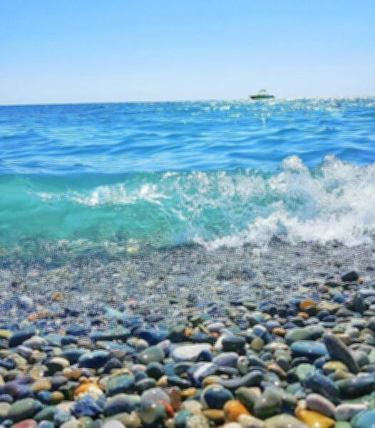 Рядом остановка, оттуда забирают на экскурсии; рядом пляжи ( я ходила от Арфы направо, там где ресторан Клёво, там дешевле лежаки))