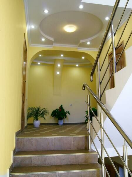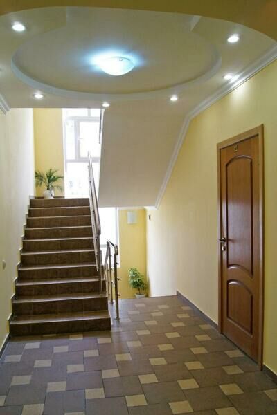 Трехэтажное здание с балюстрадами белого цвета расположено в тихом и спокойном районе города.