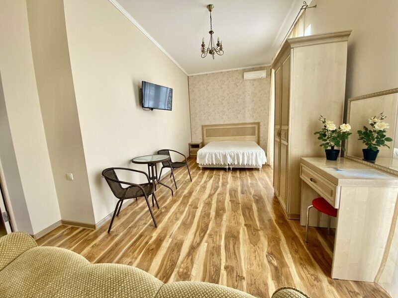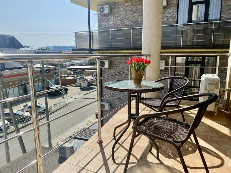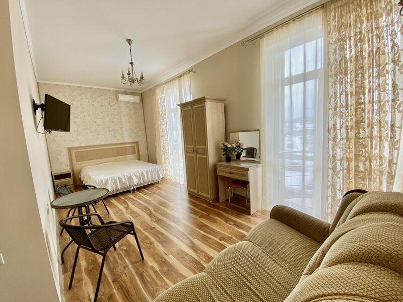 Все современные 2-комнатные апартаменты с высокими потолками располагают балконом с видом на горы. Апартаменты очень уютны. Расположены в 3-этажном здании. В каждой квартире могут разместиться от 4 до 5 человек: изолированная спальня с двуспальной кроватью и односпальным диваном-кроватью и просторный номер с кухней с диваном-кроватью.