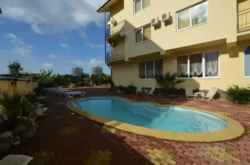 Путешествие с паройС велосипедами нельзяОтель находится в частном секторе среди других похожих на него отелей. Парковка перед отелем на 4-5 машин. Внутри есть своё кафе, в котором можно поесть. Завтраки не пробовали, но они были с 8 до 11, дополнительно можно было приобрести за 500₽. Был небольшой балкон с 2 стульями, столом и сушилкой для белья. Вид на балконы соседнего отеля (расстояние около 20 метров). Ресепшен на первом этаже, нахождение администратора там не постоянное. Если на месте никого нет - надо позвонить по указанному телефону. На территории есть небольшой открытый бассей, стоял сложенный стол для настольного тенниса. Фен дают по запросу на ресепшене - 1 раз на все пребывание. Тёплых одеял в номере не было, дали по запросу на ресепшене. Ванная комната включает в себя душевую кабину (в хорошем состоянии), туалет, раковину, зеркало, полотенцесушитель. Есть бесплатный Wi-Fi (для использования с телефона нареканий не было). Мусор убирали практически каждый день
