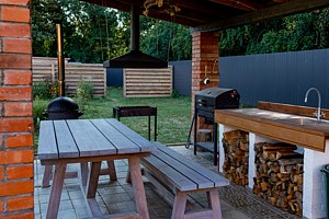 На улице вы найдете прекрасную территорию для отдыха с возможностью организации барбекю и насладиться природой вокруг. Этот дом станет прекрасным местом для дружеских встреч, семейных праздников или просто спокойного отдыха вдали от городской суеты.