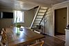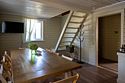Дом предлагает комфортное размещение для небольших компаний до десяти человек. На первом этаже расположена светлая гостиная с диваном, где можно отдохнуть, а также санузел. Второй этаж включает три спальни и еще один санузел. Полностью оборудованная кухня и большая столовая идеально подходят для совместных обедов и создания уютной атмосферы.