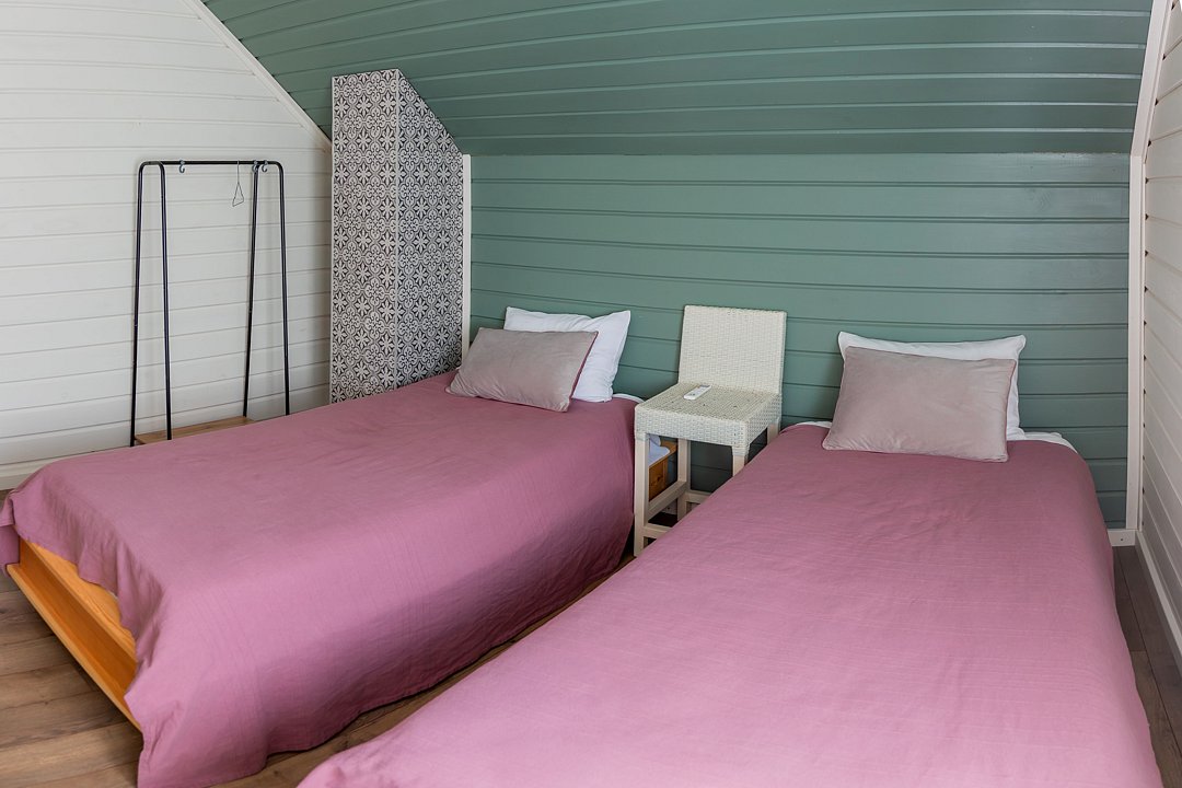 На втором этаже располагаются три комнаты отдыха: одна комната с двуспальной кроватью и диваном, в которой могут разместиться четверо, а также четыре односпальные кровати в двух других комнатах. Это сделает ночлег удобным для большой компании, обеспечивая каждому свой уголок.