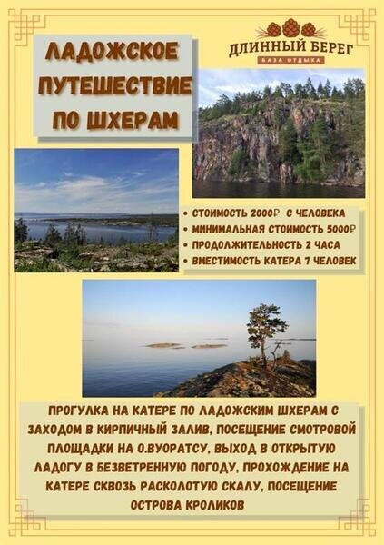 База отдыха «Длинный берег» чудесно расположилась в тихом местечке г. Питкяранта, Карелия, у самого берега Ладожского озера. Отзывчивый и внимательный персонал встретит и разместит вас, чтобы вы, в полной мере ощутили все радушие и потрясающие виды природы Карелии.