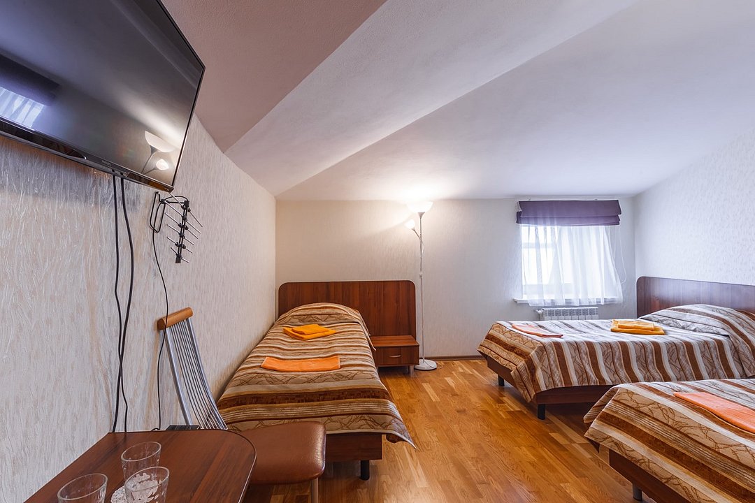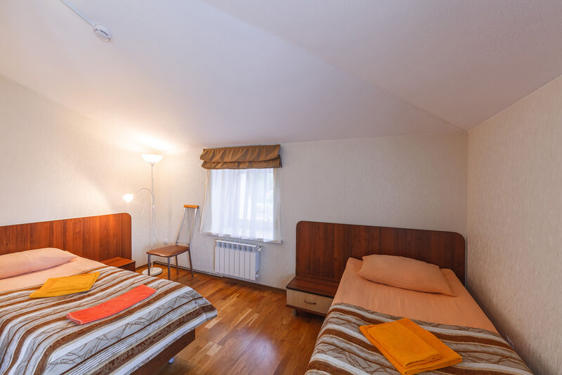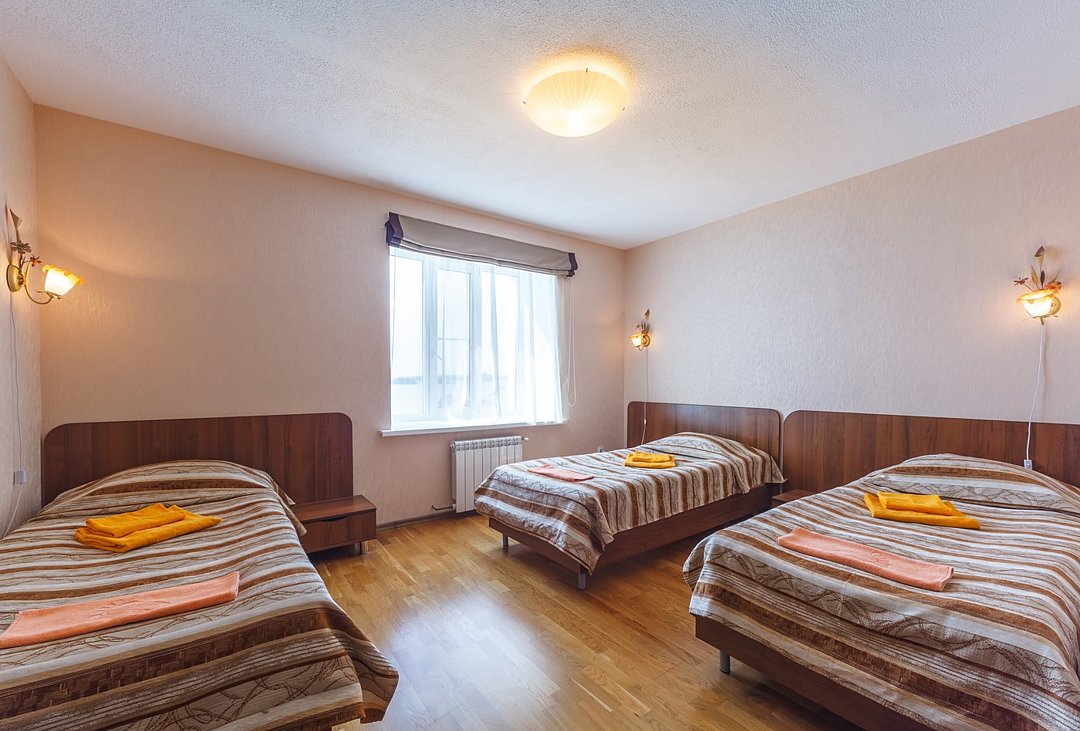 Стильный интерьер и современный дизайн создают атмосферу комфорта и уюта — сочетание доступности и хорошего уровня обслуживания. Выгодное предложение для тех, кто приезжает к нам с подругой, другом, родственником или коллегой. Если вы хотите отдохнуть после долгой дороги, то наш стандартный трехместный номер - это идеальное место для вас. Здесь вы сможете насладиться уединением и тишиной, любуясь красивыми пейзажами озера. В номере есть все необходимое для комфортного отдыха: телевизор, мини-холодильник, WiFi, душ, санузел, фен, мыло, гель для душа и шампунь. Ежедневная уборка номеров и замена полотенец гарантируют чистоту и свежесть. Вид на внутренний дворик и лес создает атмосферу спокойствия и умиротворения. Удобная кровать с ортопедическим матрацем обеспечит комфортный сон. А на 3-м этаже есть уютная комната отдыха, где вы можете позавтракать или просто выпить чашечку чая или кофе, наслаждаясь видом на озеро и острова. Если же вам нужно поработать, то здесь есть все условия для этого.Услуги и удобства