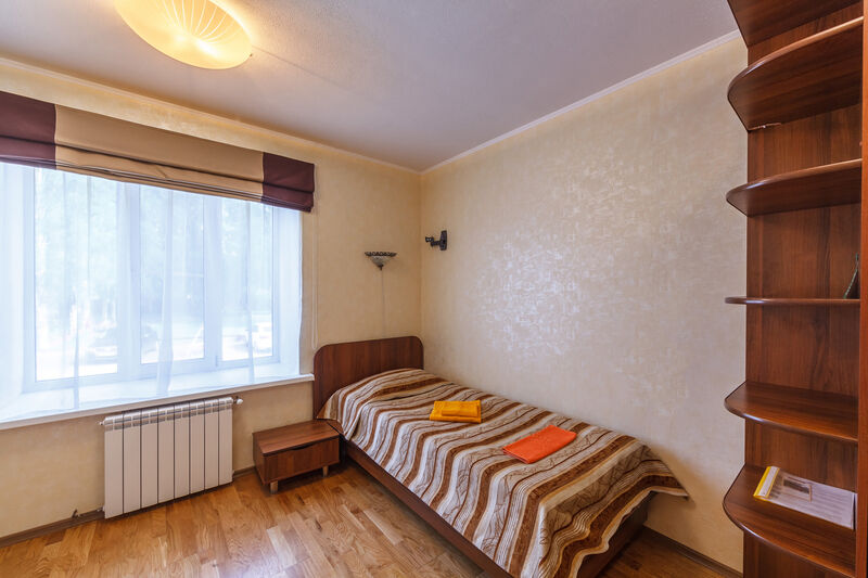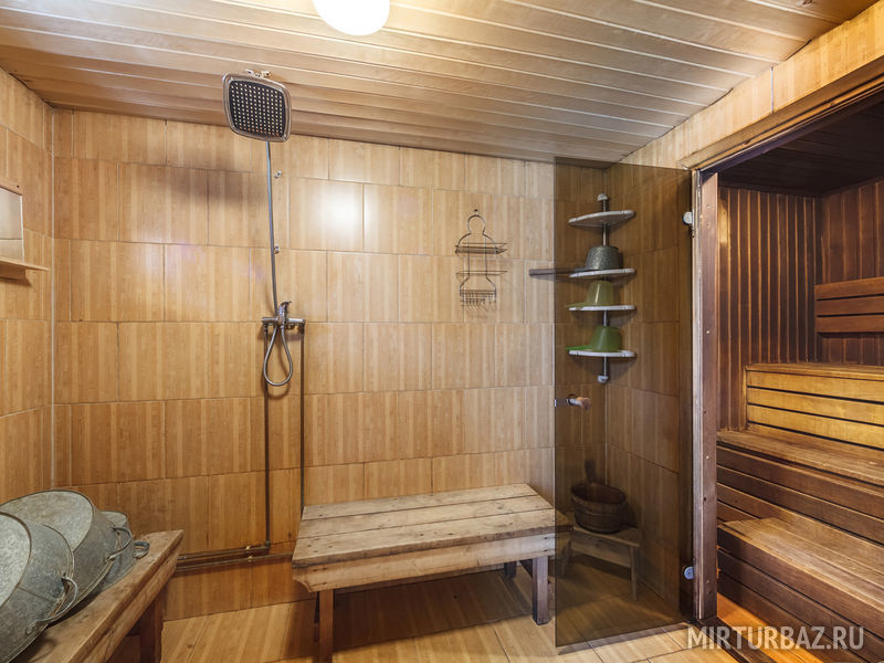 На 1 этаже: гостиная с мини-кухней, сауна, санузел с душем, 2 спальни ( в каждой 2-х спальная и односпальная кровати), на полу ковролин. В коттедже – телевизор, спутниковая антенна,музыкальный центр.