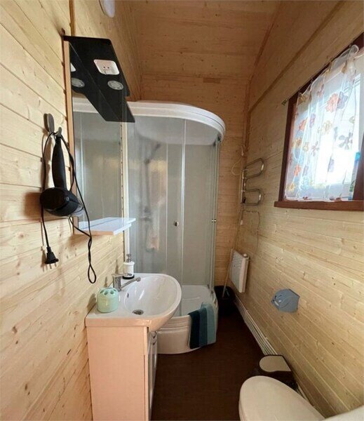 Внутри вас ждет раскладной ортопедический диван , который станет идеальным местом для отдыха после долгого дня на природе. Уникальная люстра добавляет нотку волшебства, создавая уютную атмосферу в вечернее время.