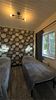 Внутри вас ждет раскладной диван малахитового цвета, который станет идеальным местом для отдыха после долгого дня на природе. Уникальная люстра добавляет нотку волшебства, создавая уютную атмосферу в вечернее время.
