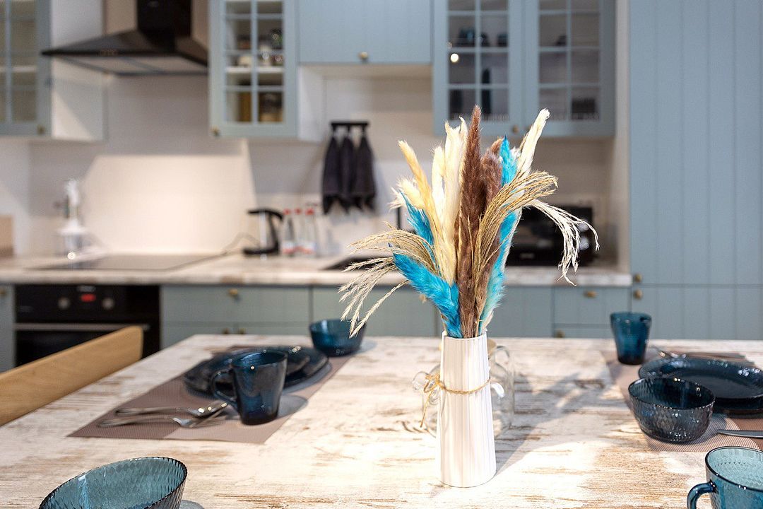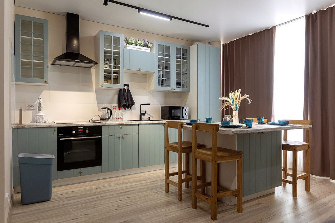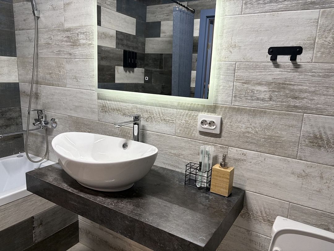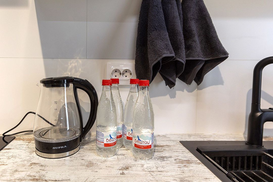 Внутри квартиры гостей ждет полный набор бытовой техники и удобств: от кондиционера и Wi-Fi до современной кухни с кофемашиной, микроволновкой, духовым шкафом и посудомоечной машиной. Особое внимание уделено качеству сна — большая дубовая кровать с ортопедическим матрасом Аскона и анатомическими подушками подарит полноценный отдых.