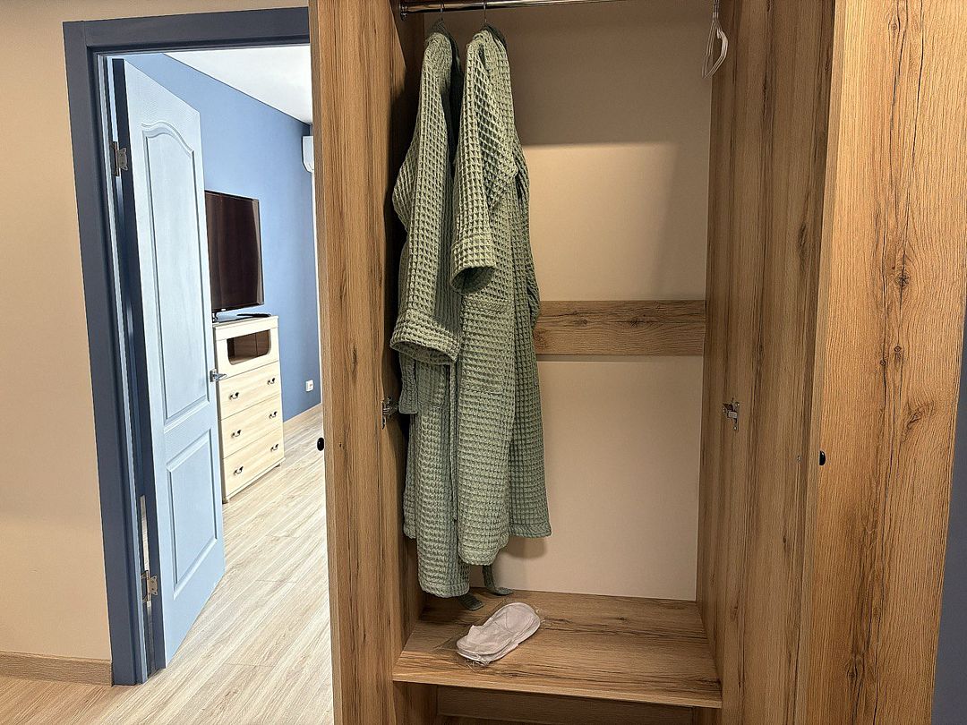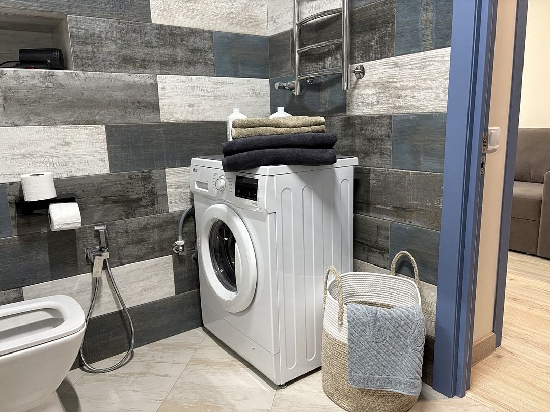 Для удобства гостей предусмотрены все необходимые мелочи — от стиральной машины с моющими средствами до полотенец, халатов и одноразовых тапочек. Здесь продумано все для комфортного и приятного пребывания, чтобы каждый мог почувствовать себя как дома.