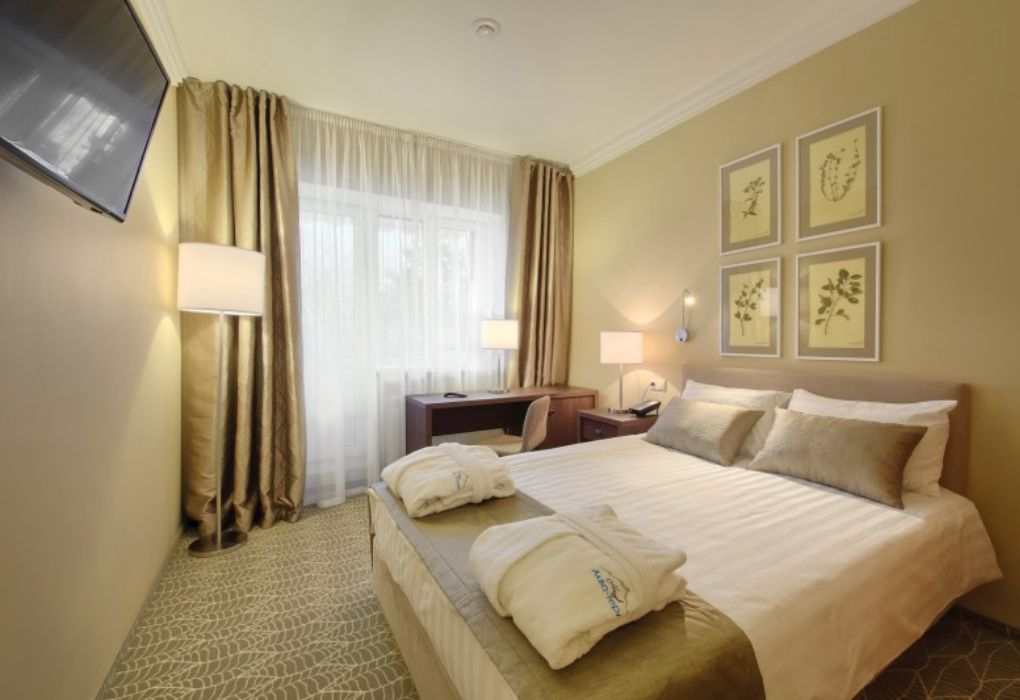 - Ресторан «Шведский стол». Обеденный зал предлагает гостям санатория трехразовое питание по системе «шведский стол». Отдельно упоминания заслуживает собственная кондитерская, где готовят великолепные торты, пироги, пирожные и другие десерты. График работы (ежедневно): завтрак с 8:00 до 09:30, обед с 13:00 до 14:30, полдник для детей с 16:00 до 16:30, ужин с 18:00 до 19:30, вечерний кефир с 20:00 до 20:30.