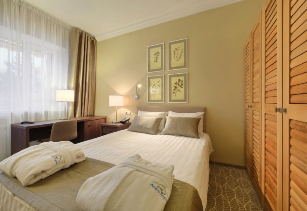 Это отдых для эстетов и ценителей европейского комфорта в лучших традициях мировых термальных курортов. На 2,5 га в долине Пятигорья расположились открытые и закрытые бассейны с водой 100% и 50% минерализации, бани и сауны, зоны релакса и спа.