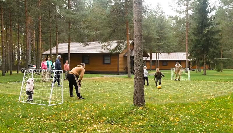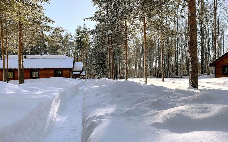 Комплекс окружён сосновым бором, создавая атмосферу гармонии и свежего карельского воздуха. Гостям предоставляются все условия для активного отдыха: ухоженные лесные тропинки для пеших прогулок, места для рыбалки, а также возможность покататься на лодках или SUP-бордах. Для детей предусмотрена детская площадка и возможность поиграть на поле с воротами в футбол.