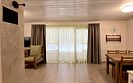 В кухне-гостиной находится раздвижной диван, который можно использовать в качестве дополнительного спального места.