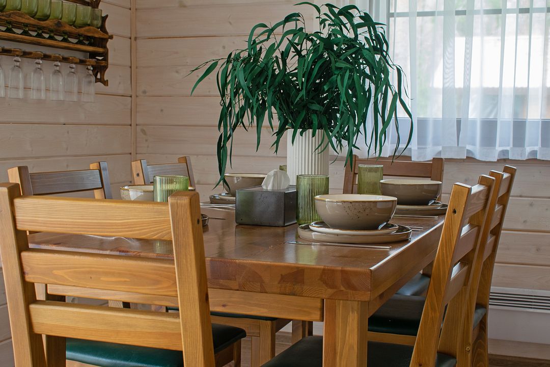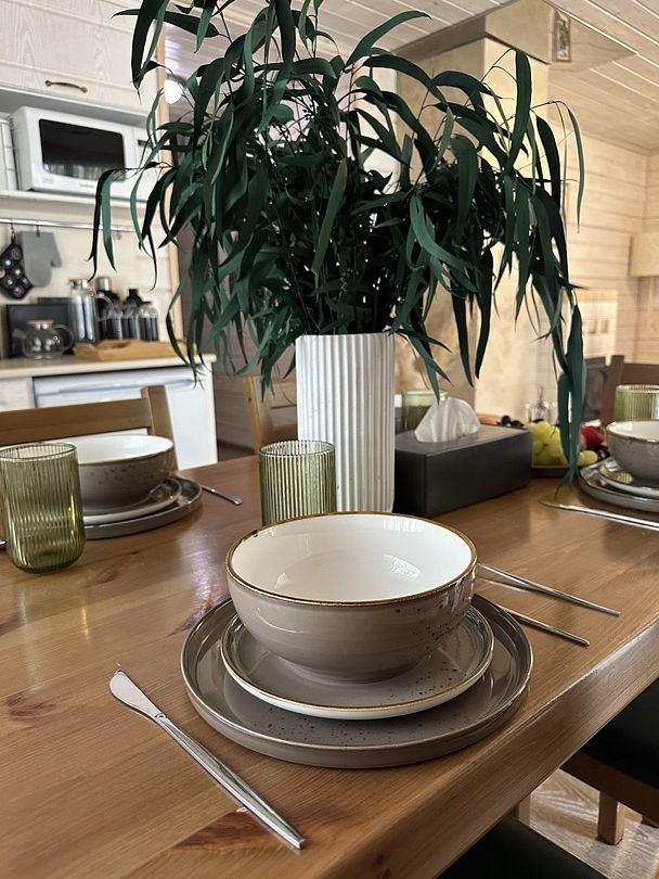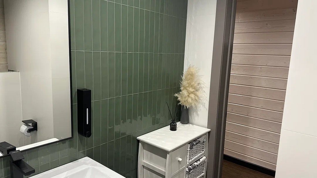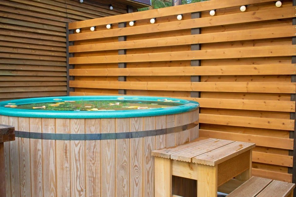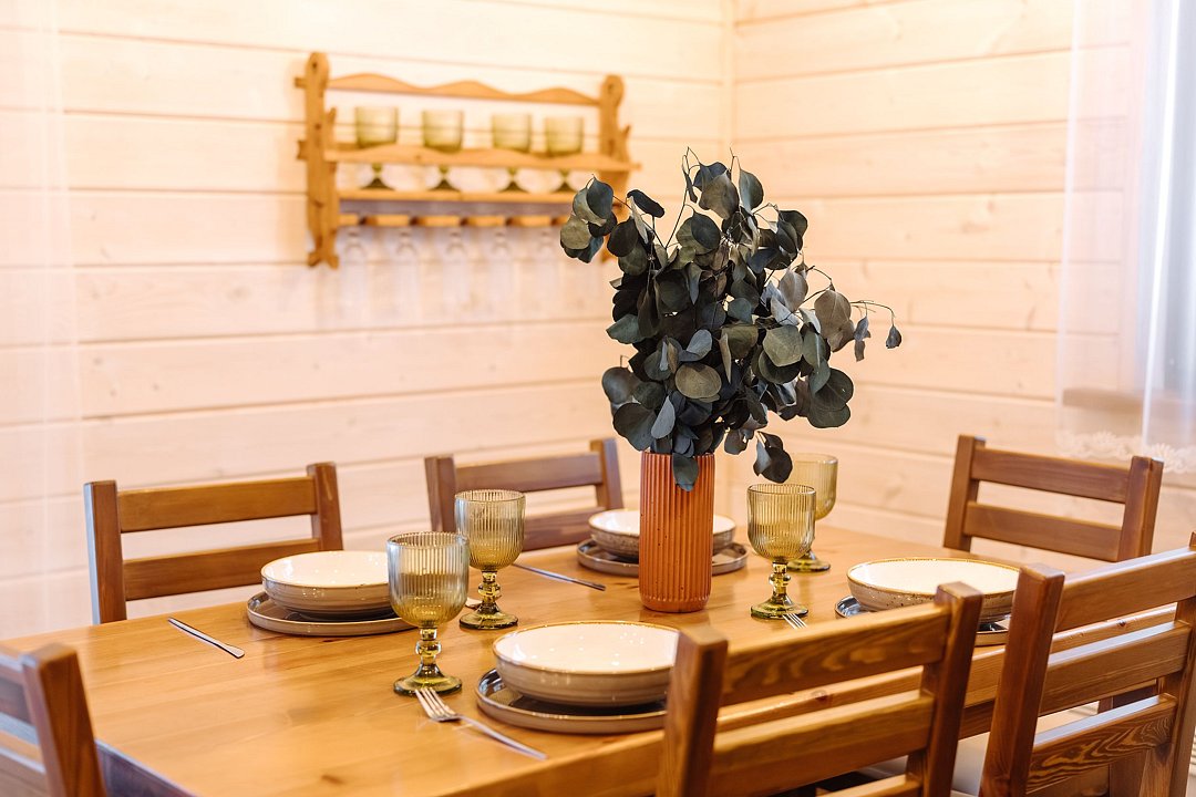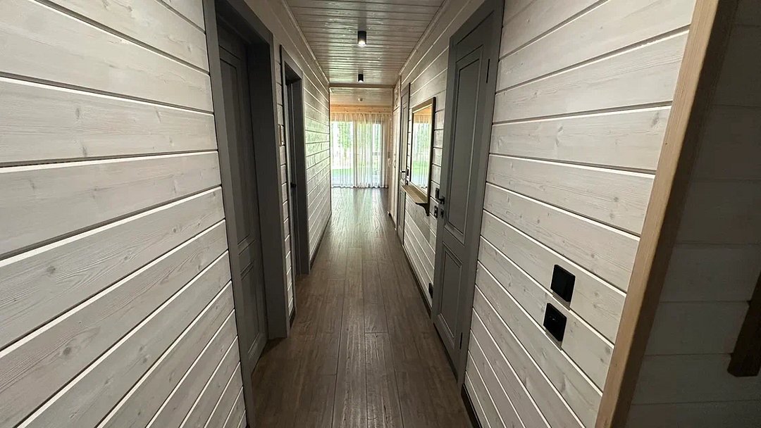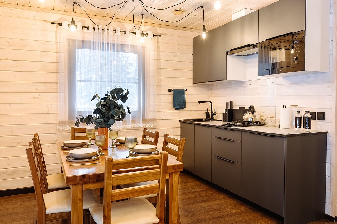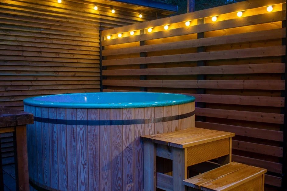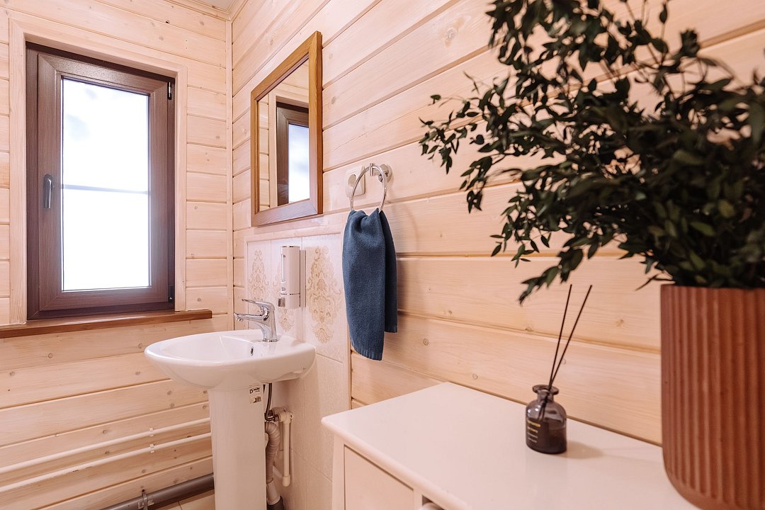 Каждый коттедж оснащен собственной сауной, что позволяет гостям окунуться в атмосферу спокойствия и уединения, не выходя из дома.