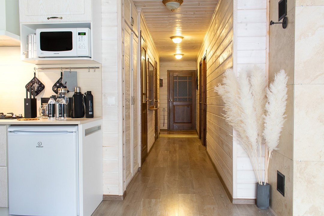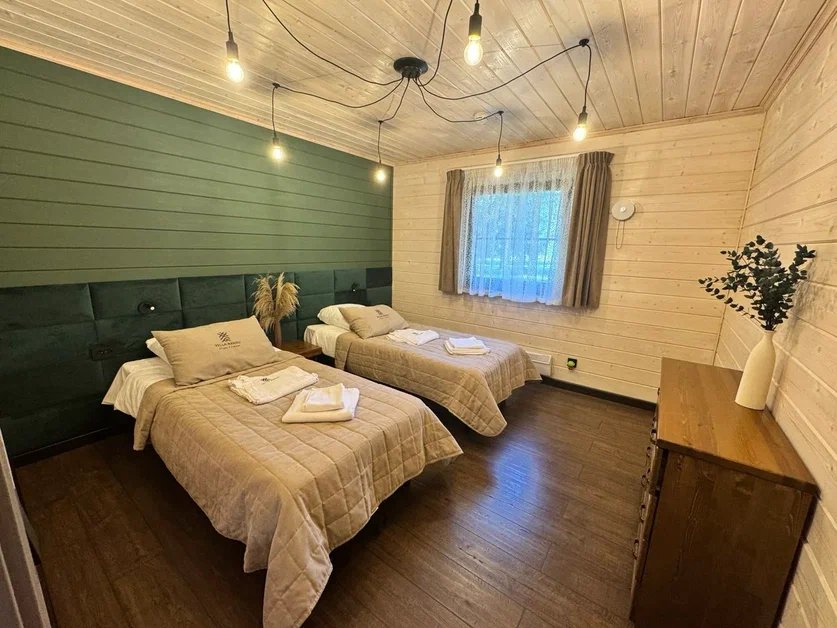 Дом отдыха идеально подойдет для комфортного отдыха компании из 4 человек в любое время года. В нём продумано всё до мелочей, чтобы вы могли расслабиться и насладиться отдыхом.