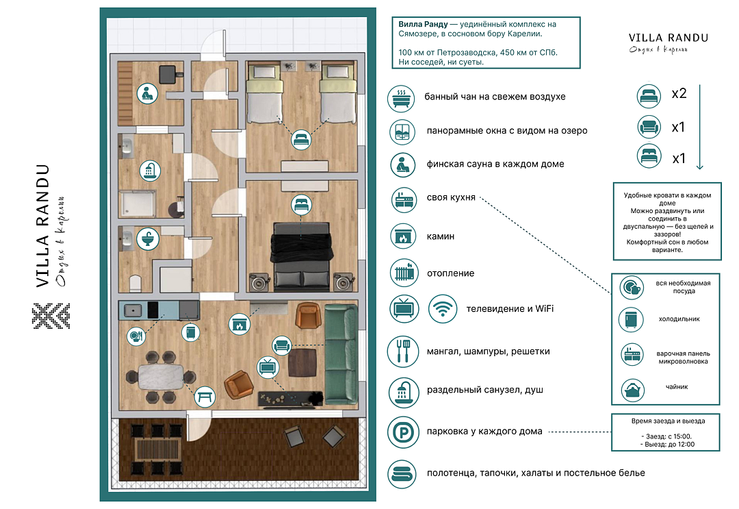 «Вилла Ранду» — это идеальное место для тех, кто хочет вернуться к природе и создать незабываемые воспоминания. Здесь каждый найдет что-то по душе, будь то рыбалка на озере или уютные вечера под звёздами с близкими.