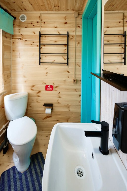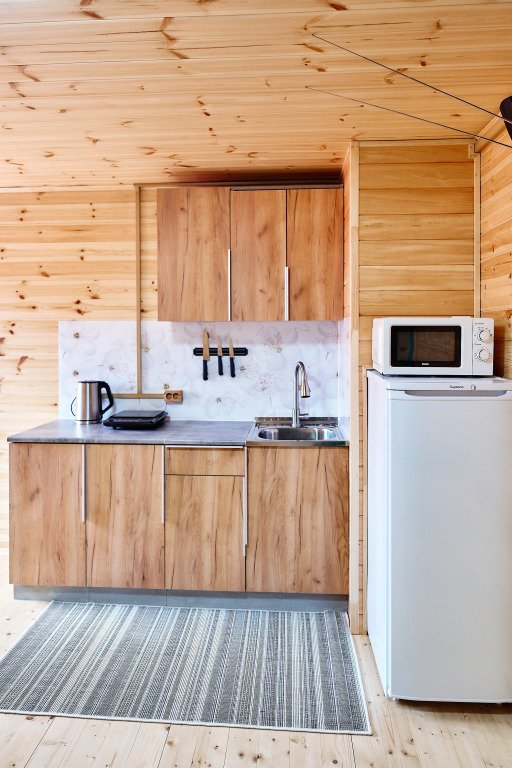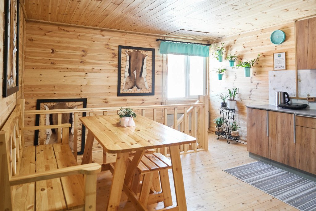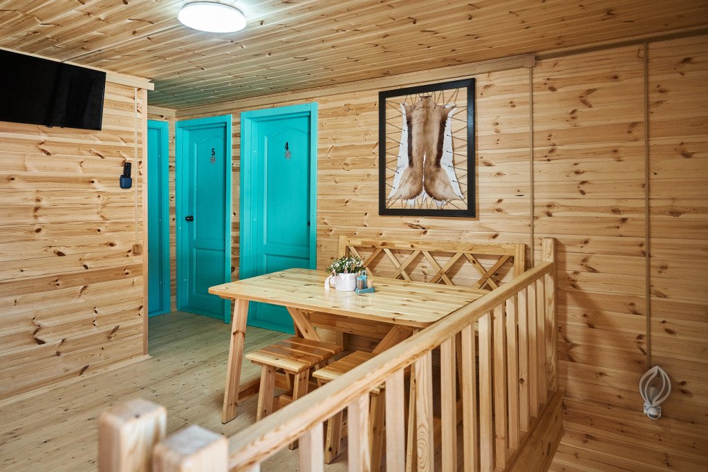 Гостям предлагаются номера на разных этажах гостевого дома. Каждый номер отделан натуральными материалами в стиле кантри-лофт и оснащён кроватями, тумбочками и вешалками для размещения вещей. В каждом номере есть санузел с душем, раковиной и унитазом. Для гостей подготовлены банные принадлежности, мыло, гель-шампунь, тапочки, фен (по запросу), полотенцесушитель с подогревом, сушилки для обуви и белья. В холодное время года работает отопление.