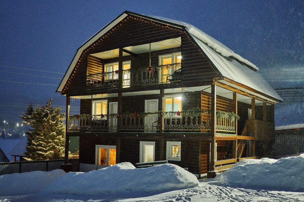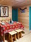 Коттедж вмещает до 16 человек — 12 основных и 4 дополнительных спальных мест.