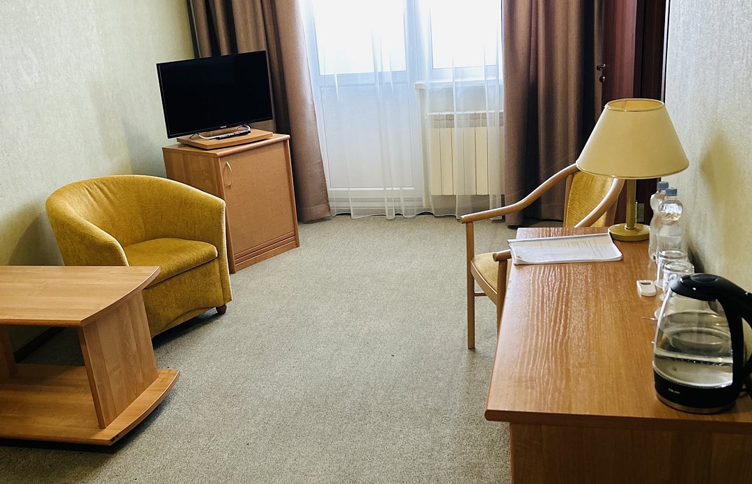 Из минусов можно отметить то, что по тв настроено всего около 5 каналов. Чайник в номере заменён бойлером на этаже. -