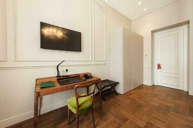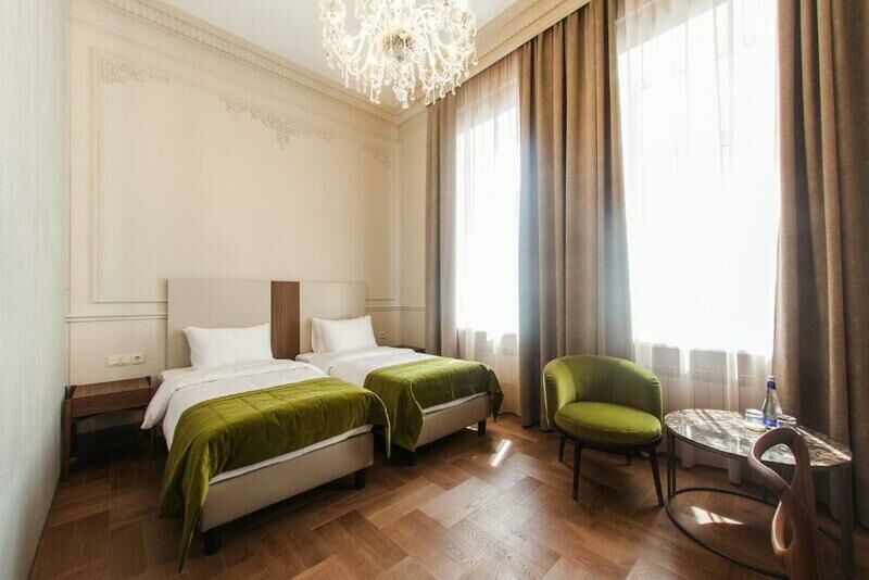 Трехэтажный корпус с массивным портиком находится на одной из главных магистралей города — улице Ленина. В распоряжении гостей семнадцать 2-х и 4-х местных номеров разных категорий комфорта. Во всех комнатах — классический интерьер, выдержанный в приятных пастельных тонах, полы из лучших пород деревьев, высокие потолки и арочные окна, обрамленные красивыми портьерами. Каждый номер оснащен кондиционером и необходимой техникой: везде есть телевизор, электрочайник, фен. В ванных комнатах гостей ожидают наборы косметических принадлежностей и уютные мягкие халаты.