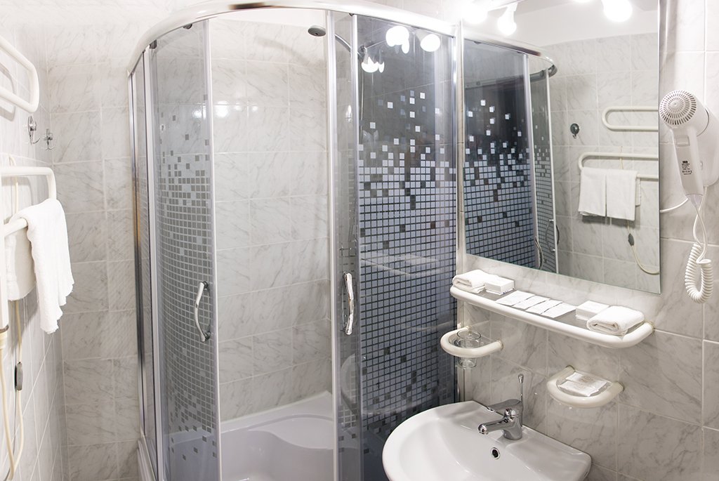 Санузел с душем, ТВ, мини-холодильник